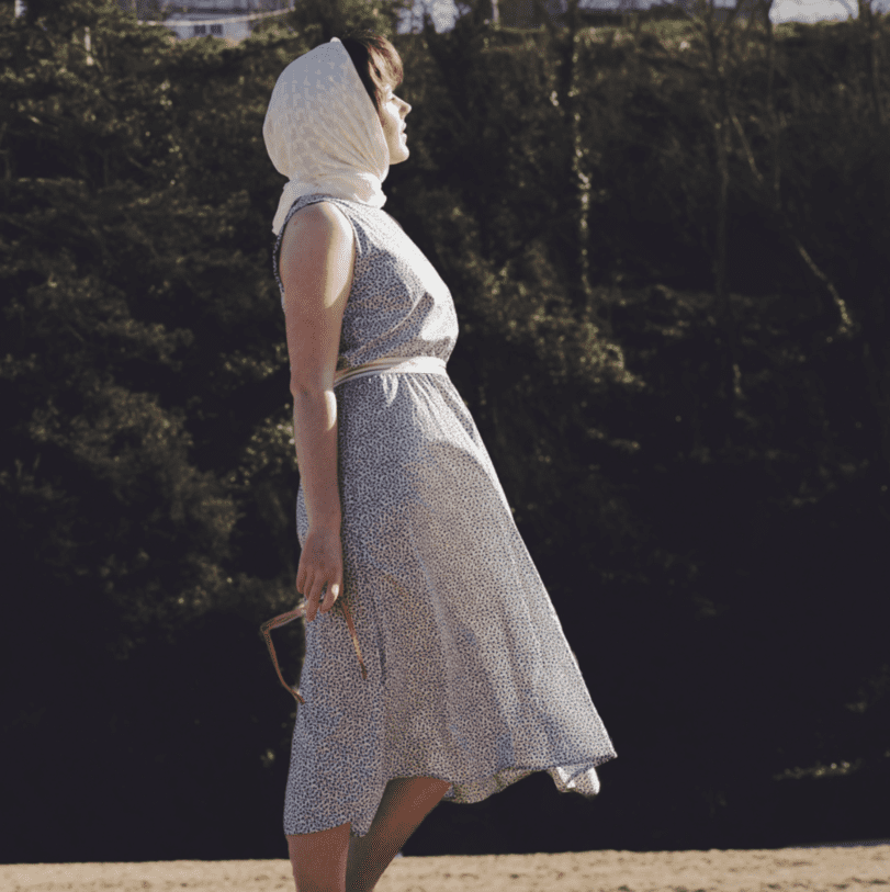 Robe en coton ceinture elastiqué dorée sans manche avec ouverture en goutte à l’arrière et jupe ample